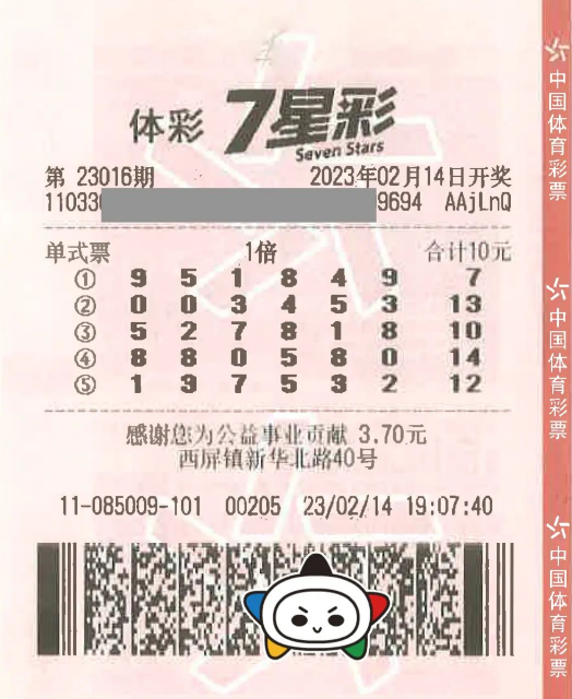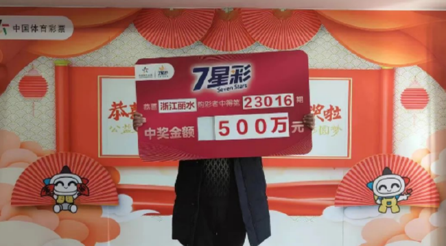 2月14日,丽水市松阳县西屏镇新华北路40号的3311085009号体彩实体店传来佳音,一购彩者喜中7星彩第23016期一等奖500万元。中奖彩票为一张10元5注的单式票,其中第3注中得本期一等奖,单票擒获500万元。
